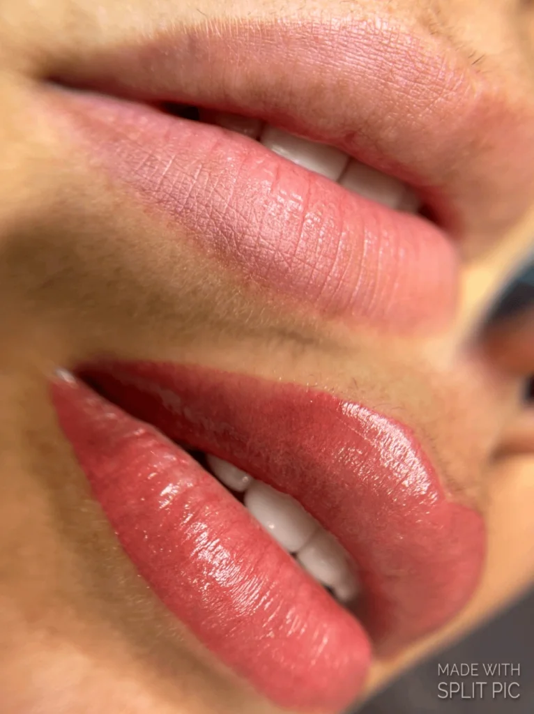 At the appointment, you’ll be given numbing cream while the artist maps out an even shape and appropriate color. Once approved, a specialized cosmetic tattooing machine is used in the process that works delicately on the sensitive skin of your lips.
