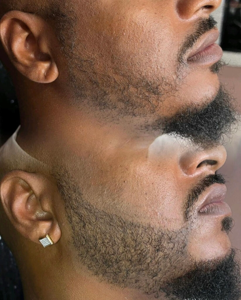 Enter the world of facial hair – yes, micropigmentation can be a lifesaver for individuals struggling with patchy beards too! Just like on your head, the hair follicles on the face can thin, leaving unwanted patches that may lack volume and density. But don’t fret – micropigmentation has you covered!